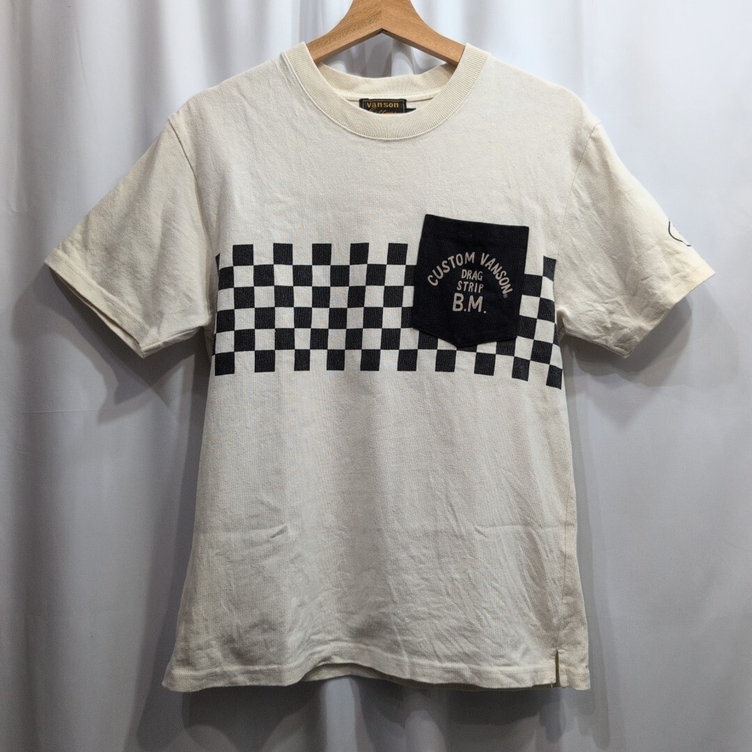 > VANSON バンソン ロゴ刺繍 × チェッカーフラッグ 半袖 Tシャツ S メンズ モーターサイクル 半袖シャツ/ショット/ノートン/アヴィレックス