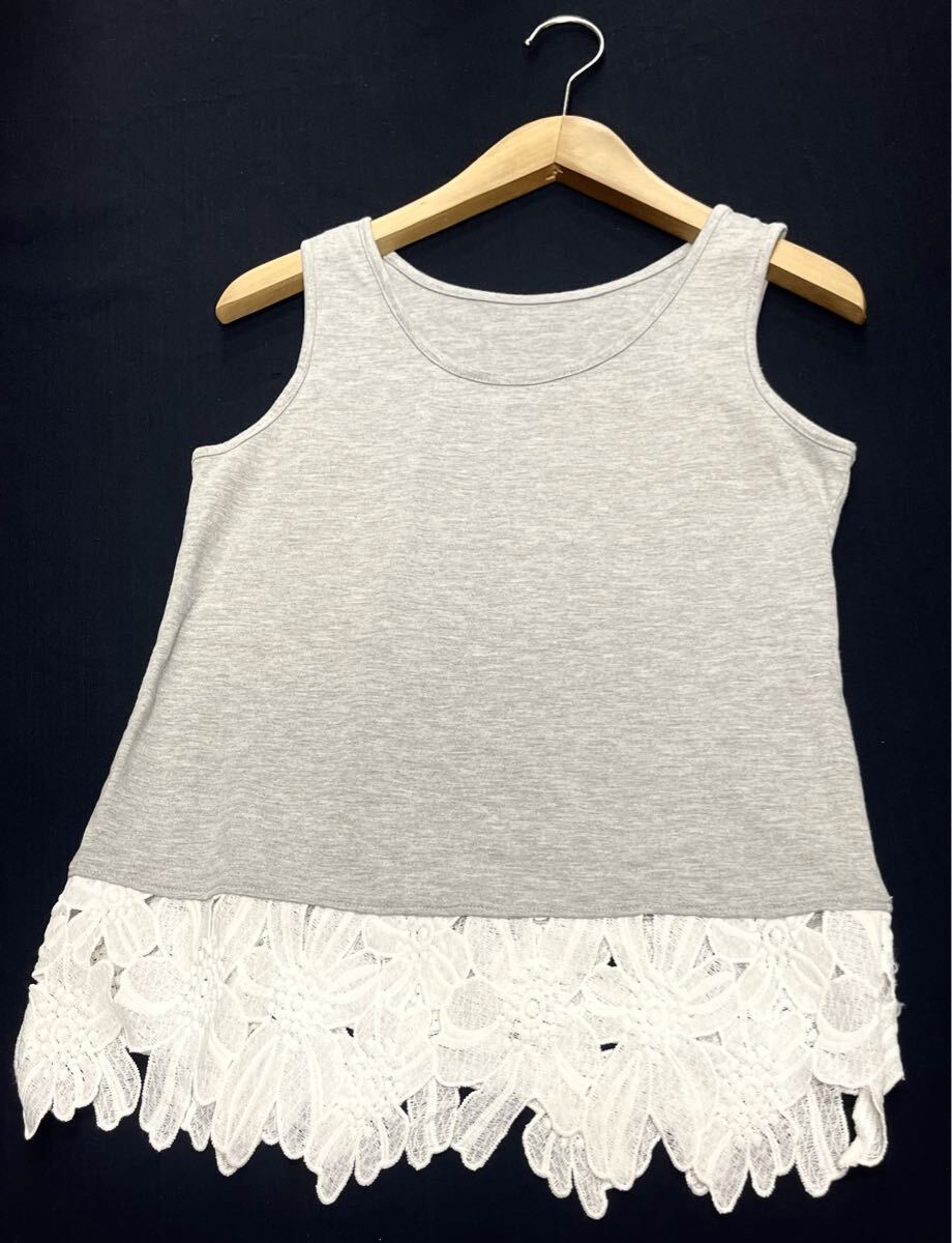 - LIVETION★(L)裾フラワー刺繍 ノースリーブ カットソー タンクトップ/グレー系 美品