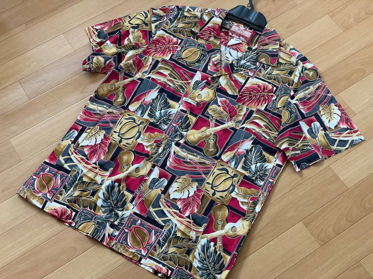 > 中古品 RJC アロハシャツ Lサイズ 肩幅:約48㎝ 着丈:約75㎝ 袖丈:約25㎝ コットン 100% ヴィンテージ ウクレレ カメ