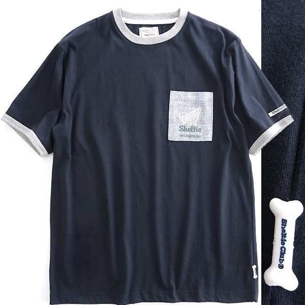 > 新品 シェルティークラブ デニム風 ポケット 半袖 Tシャツ M 紺 灰 【SH1442084_79】 Sheltie Club 春夏 メンズ カットソー 丸首