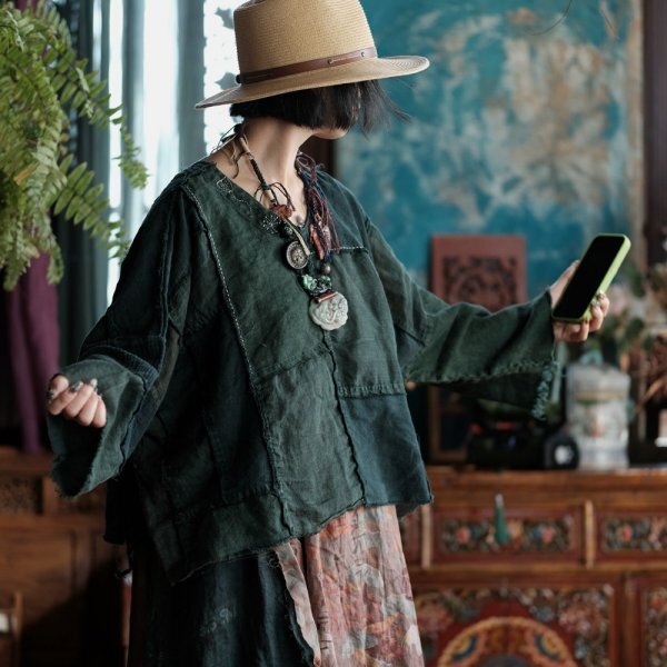 - lgn 0707 2182 トップス チュニック アンティーク風 縫い合わせ 洋服ミックス ロマンファッション 麻100%
