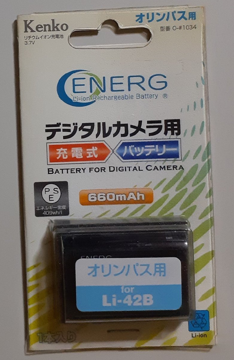 > 6397 未使用未開封 互換バッテリー オリンパス Li-42B互換 kenko ENERG リチウムイオン充電池 3.7V 660mAh O-#1034 ケンコー・トキナー
