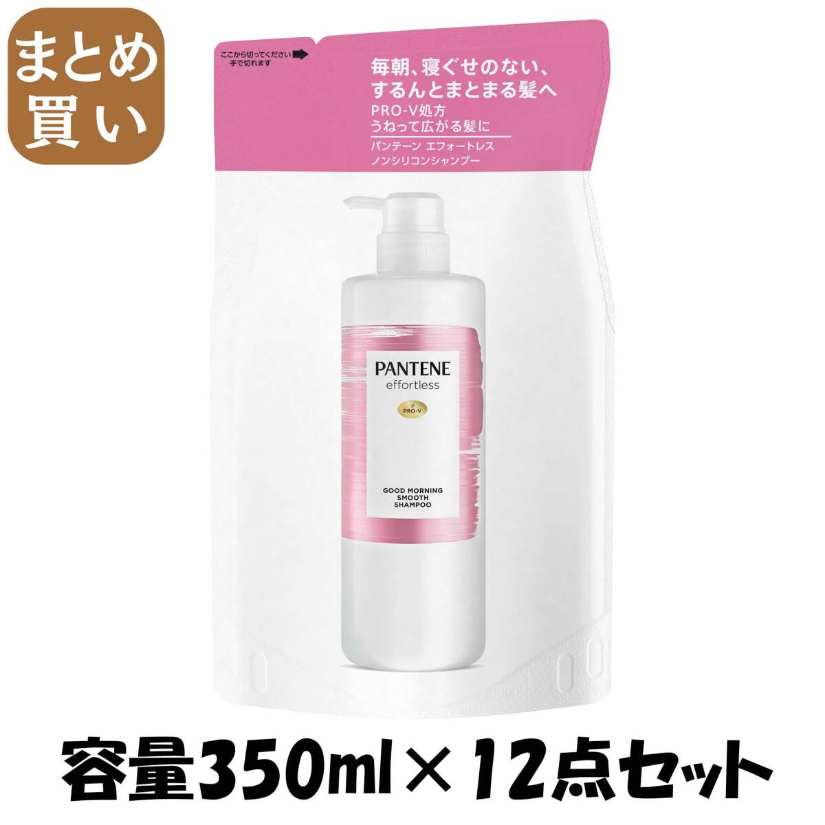 - 【まとめ買い】パンテーン エフォートレス グッドモーニングスムース シャンプー 詰替 容量350ML×12点セットP&G シャンプー