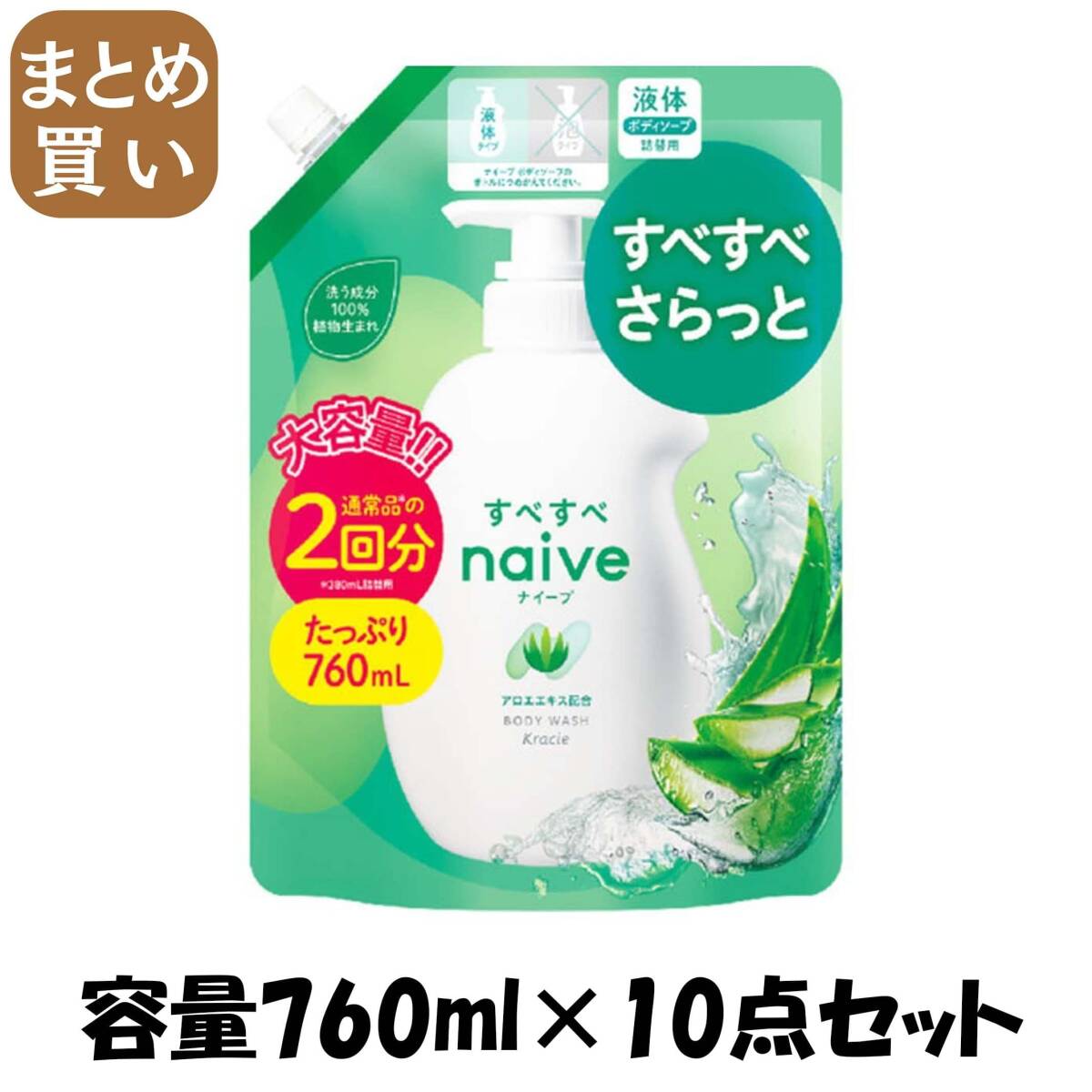 - 【まとめ買い】ナイーブ ボディソープ(アロエエキス配合)詰替用2回分 容量760ML×10点セットクラシエ