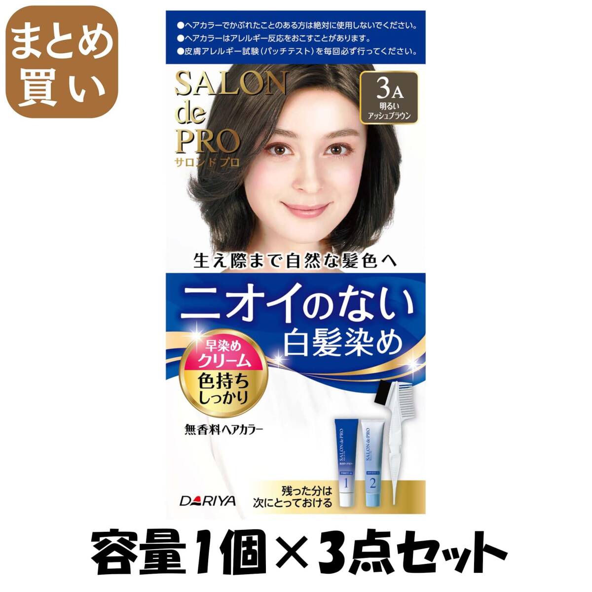 - 【まとめ買い】サロンドプロ 無香料ヘアカラー 早染めクリーム(白髪用)3A<明るいアッシュブラウン> 容量1コ×3点セット ダリヤ
