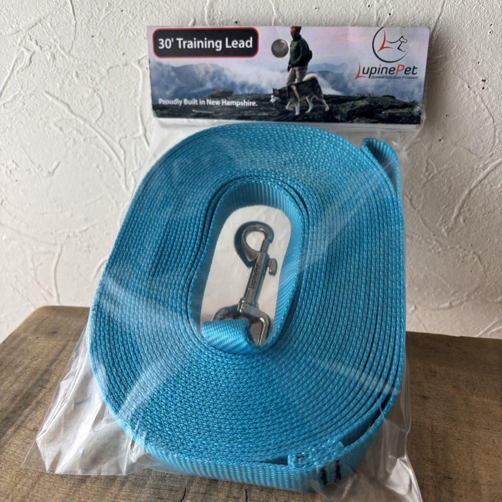 > LUPINE トレーニングロングリード・アクアブルー 水色 長さ9m 18mm幅 Basic Solid 30ft アメリカ製 軽量 丈夫