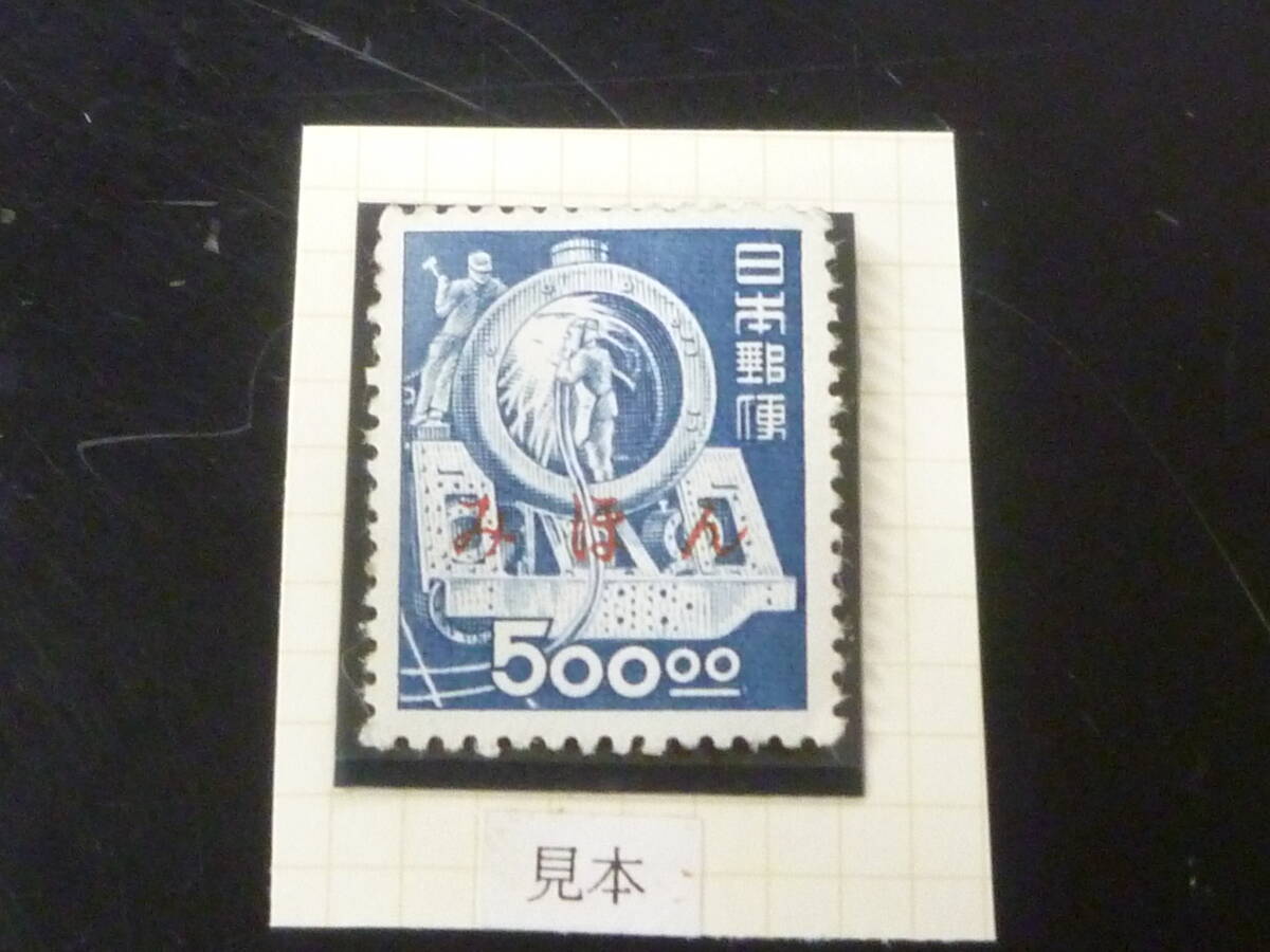 - 25SE M 【日本 みほん切手】 1952年 昭和すかしなし #293 SL製造 500円 OH・VF