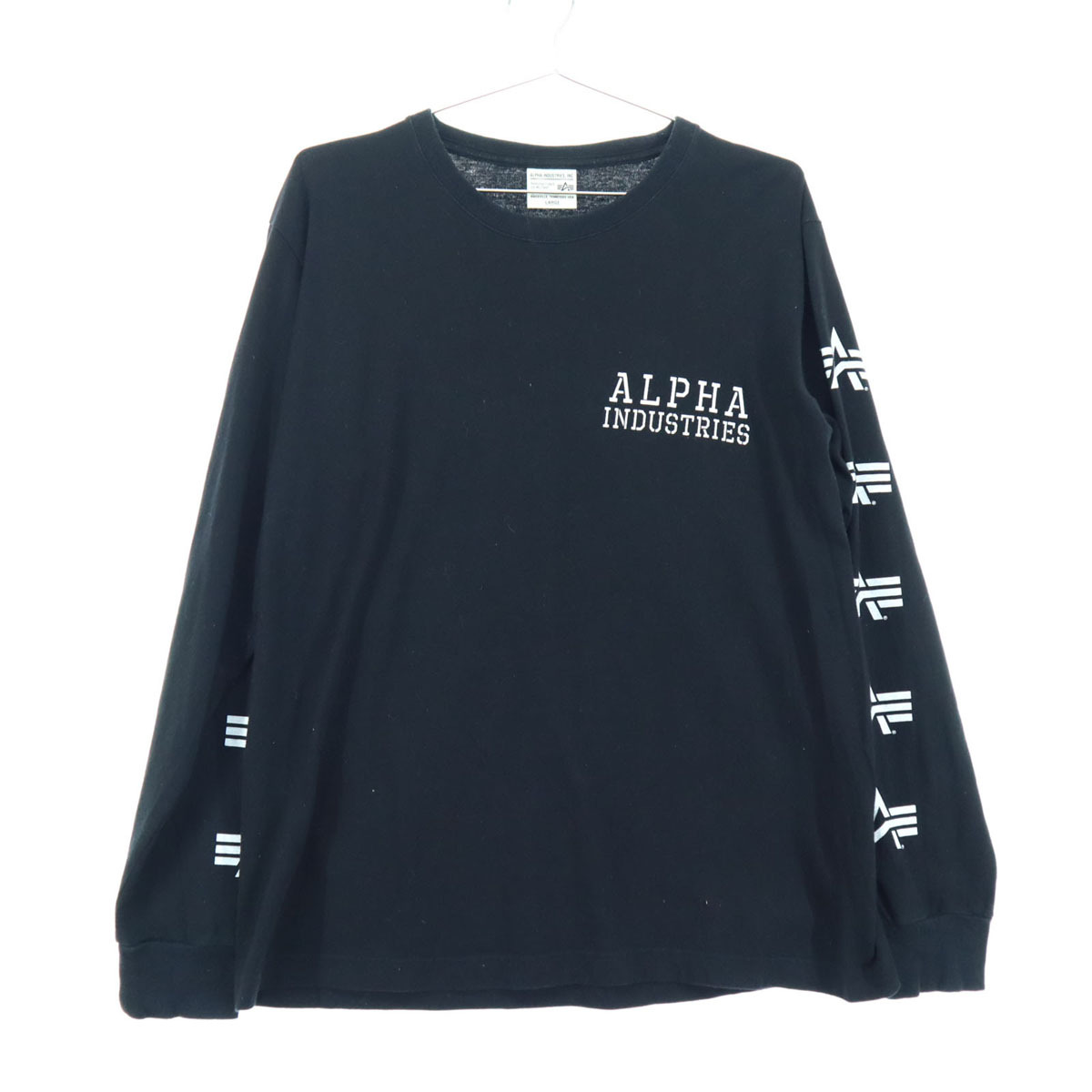 - 美品 ALPHA INDUSTRIES INC アルファインダストリーズ プリント 長袖 Tシャツ L ブラック ロンT メンズ