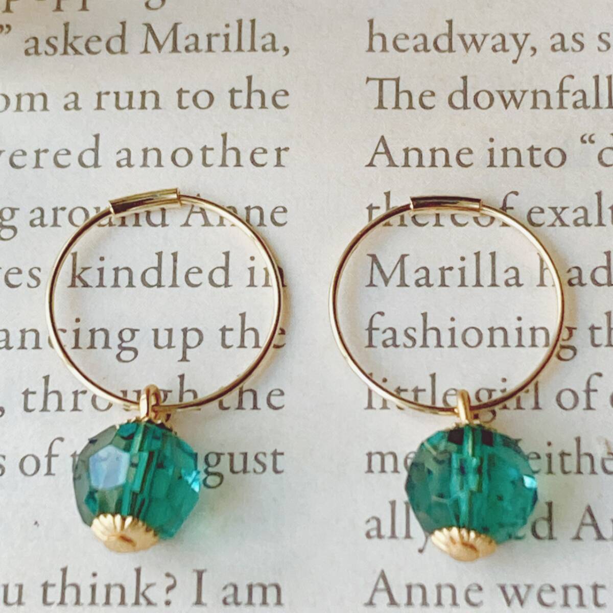 - ピアス リングピアス ビーズチャーム グリーン 多面カット ゴールドトーン 未使用品細目 小さめ☆vintage jewelry accessoriesR0943