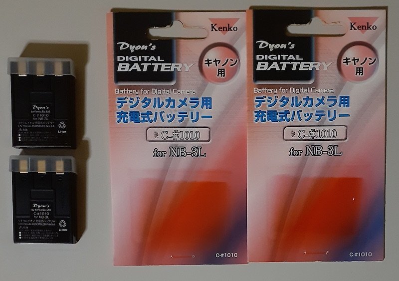 - 6434 未使用未開封 2個 互換バッテリー キャノン NB-3L互換 kenko リチウムイオン充電池 3.7V 790mAh C-#1010 ケンコー・トキナー
