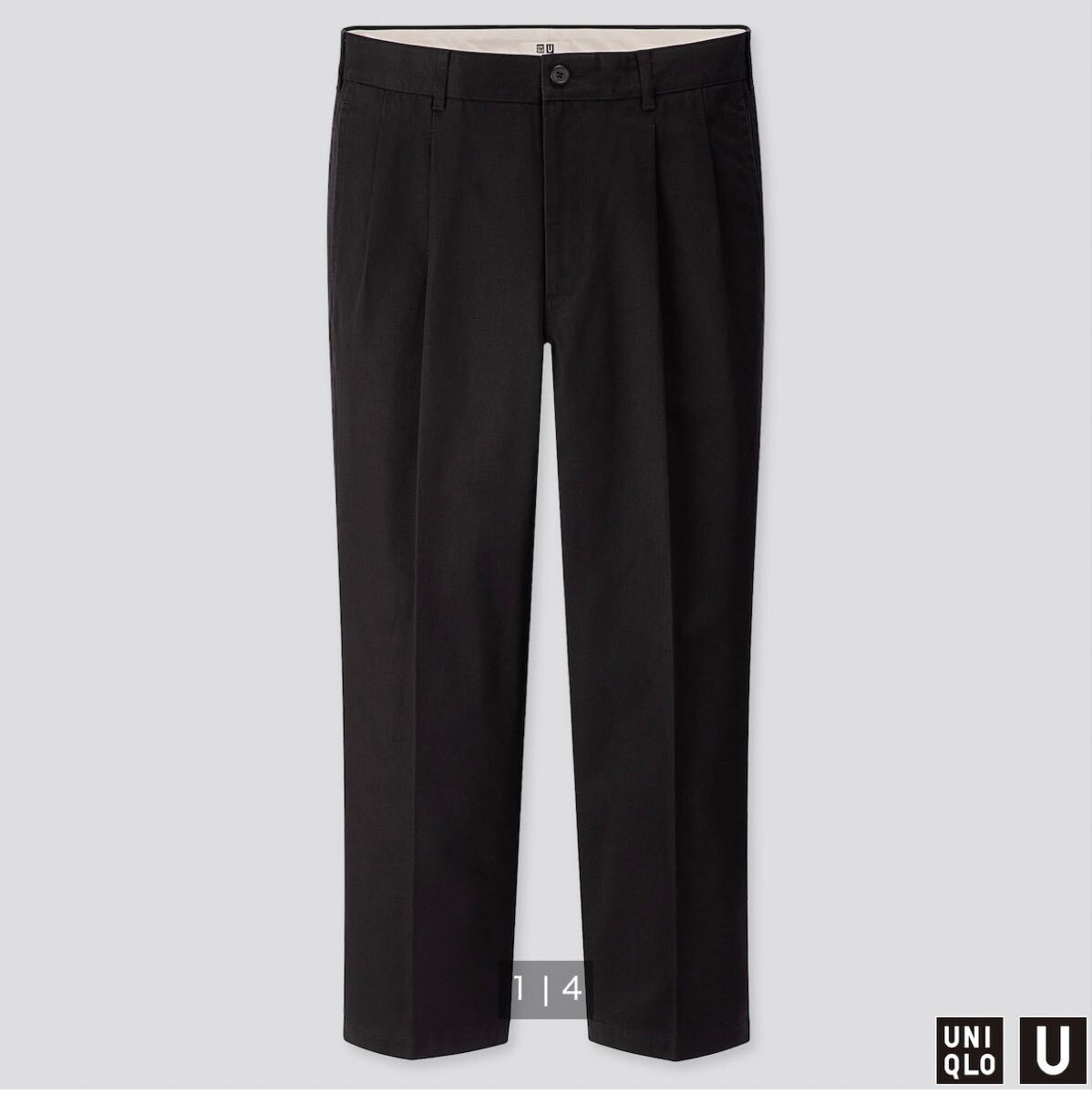 - UNIQLO U ワイドフィットタックテーパードパンツ 321-420664 パンツ ボトムス テーパード 黒 フルレングス タック