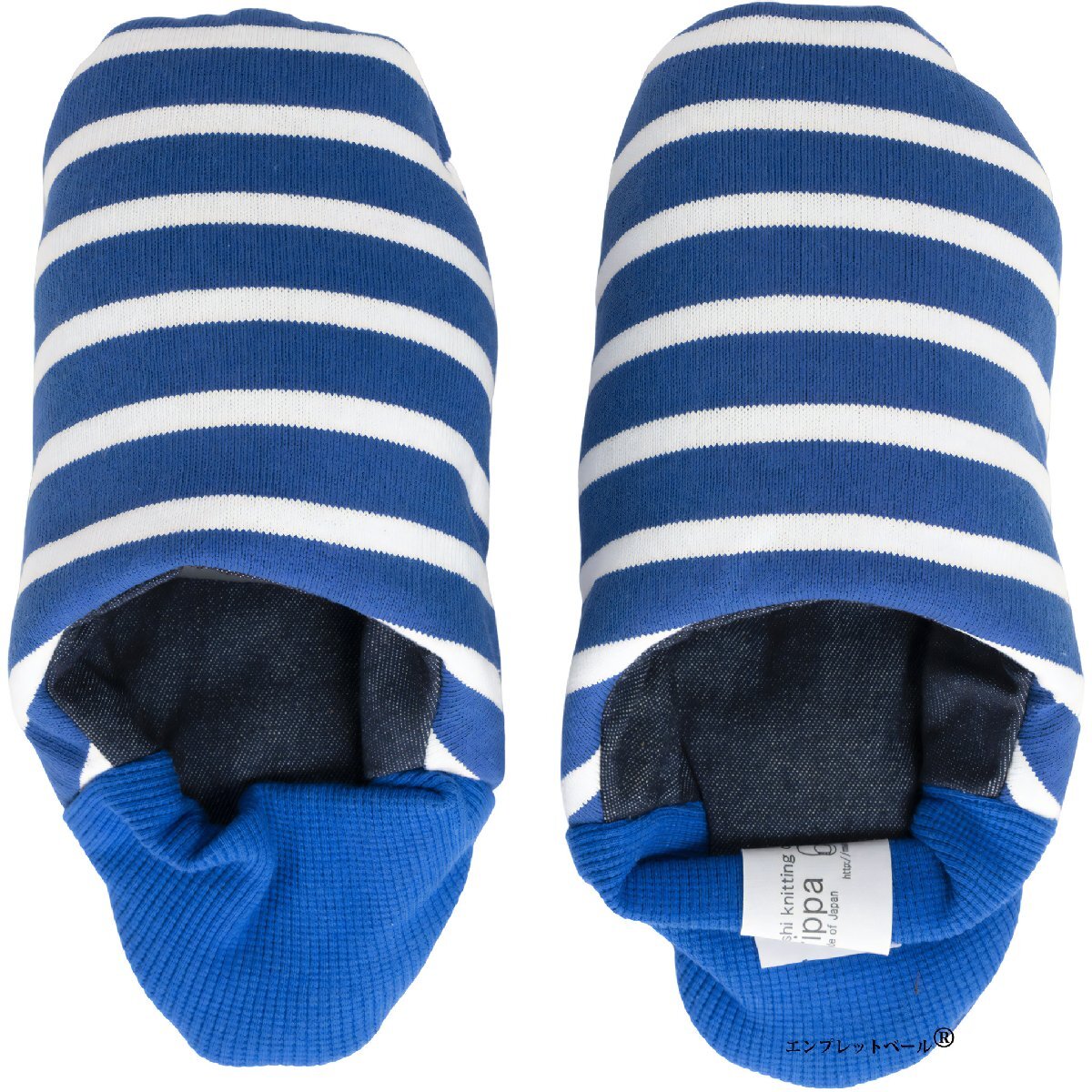 > スリッパと靴下のいいとこどりした室内履き シックボーダー デニム ブルー L 25.0~26.5cm 新感覚のルームシューズ 白のラインが清々しい