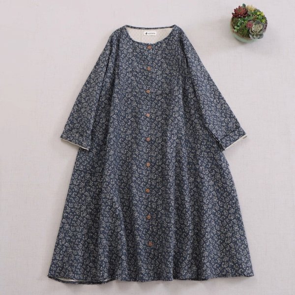 > lb 0708 カーディガンシャツワンピース Aライン フリーサイズ チュニック トップス ナチュラル 綿100% 大人可愛 ヒダ 花柄2
