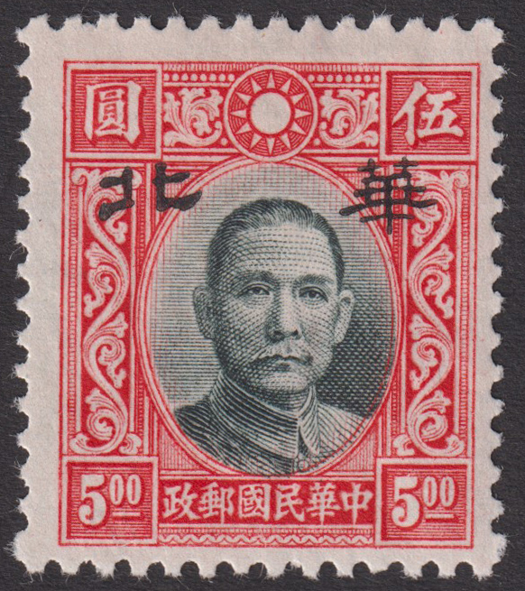 - 中国占領地切手 JPS:6C68a 華北 華北加刷 中華版孫文 5円 櫛型C:12.5 未使用 2104