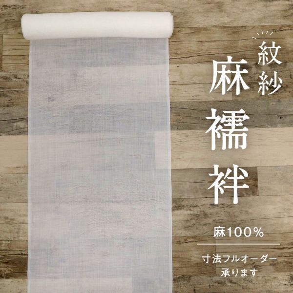 > 【反物】 夏の麻 長襦袢 紋紗 籬に秋草地模様 着物下 本麻 白 お仕立て可 反25-78