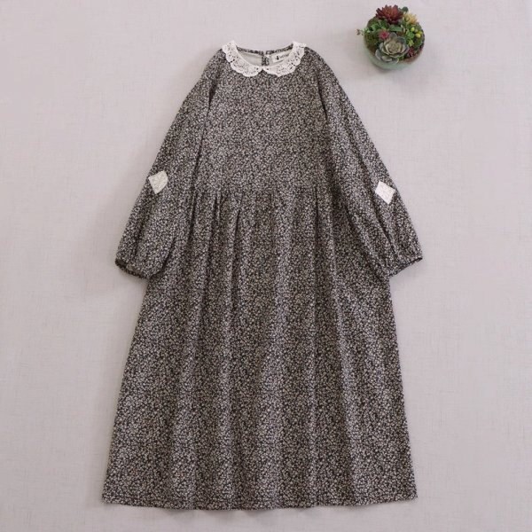 - lb 0708 ワンピース Aライン フリーサイズ チュニック トップス ナチュラル 綿100% 大人可愛 レース 花柄2