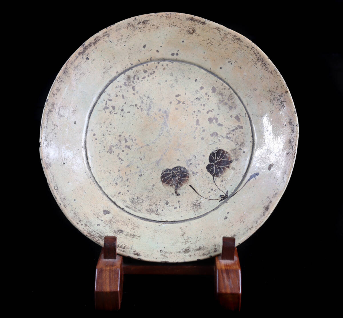 - 希少 江戸時代 楽焼系 葵葉絵付皿 直径27.5cm(御深井清水行燈皿民藝民芸瀬戸)E750