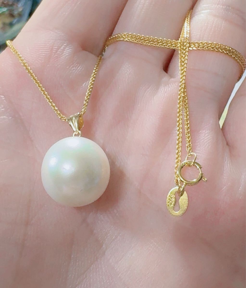 > R2-01723天然本真珠 シャンパン色 ネックレスSV925 南洋真珠 ペンダントトップK18 一点物 一品一図 大粒12.9mm 絶品 天然 光沢抜群
