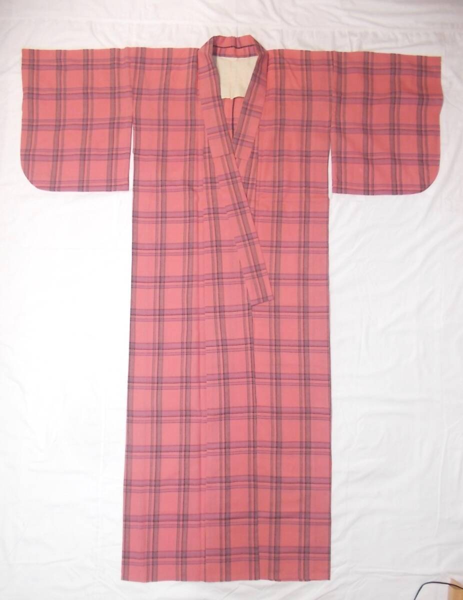 - 浴衣④★濃ピンク/格子-チェック/厚手/151cm/綿紬?★夏秋向き★★