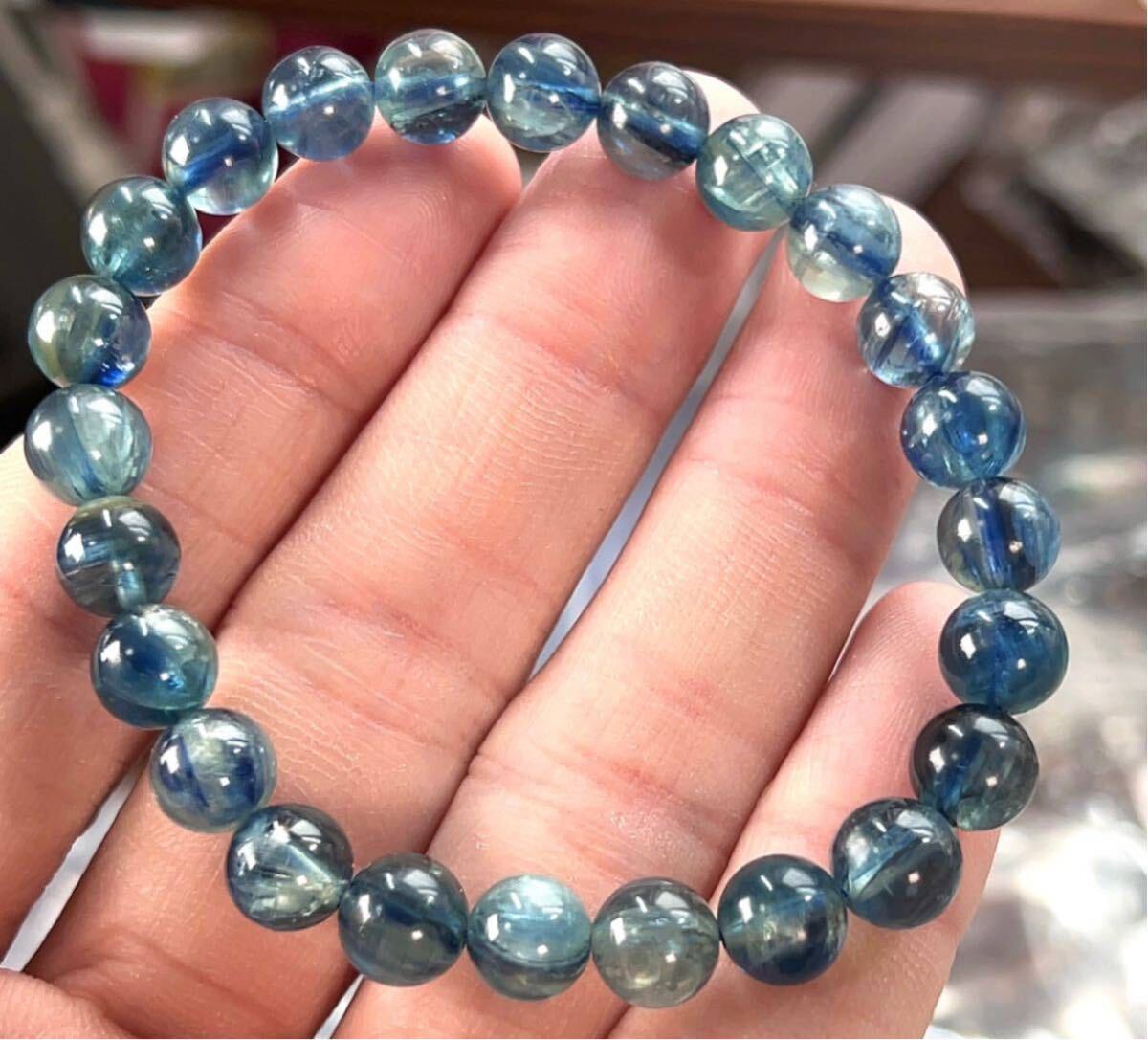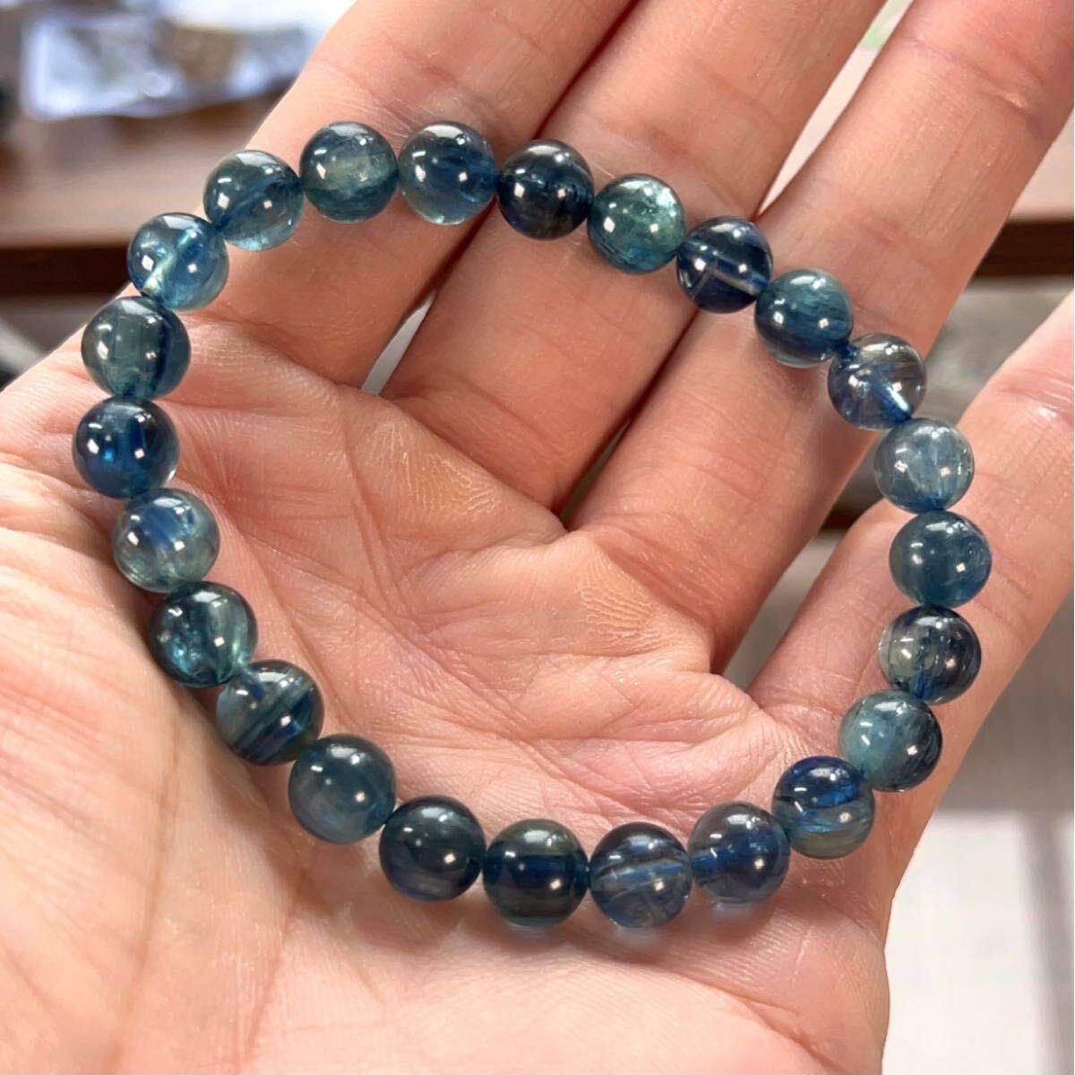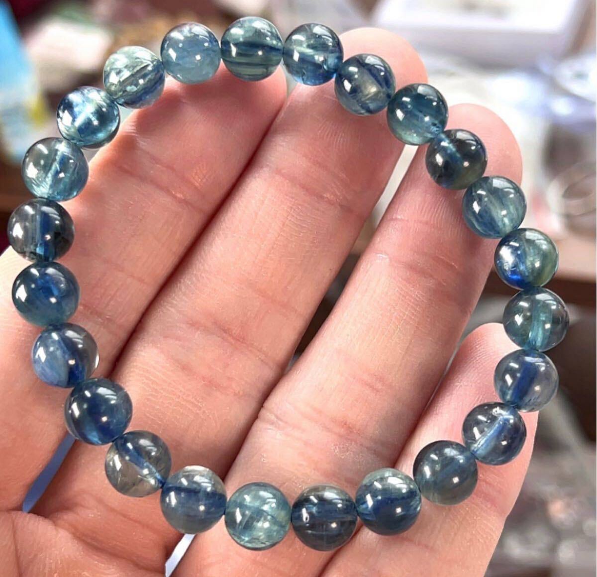 - 高品質 グリーンブルーカイヤナイトブレスレット 18 タンザニア産 天然石 天然色