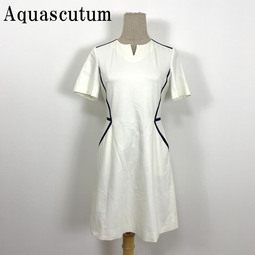 > LA7207 アクアスキュータム コットン 半袖ワンピース Aquascutum オフホワイト ストレッチ有 テープライン ポケット有ホワイト 6