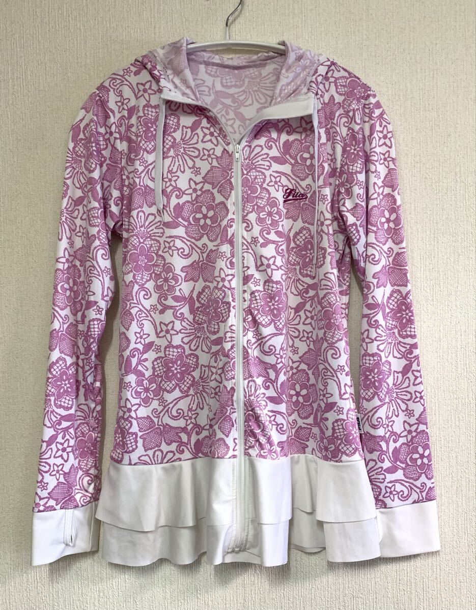 - *美品 FILA 花柄ラッシュガード M♪フード&フリル付き ピンク