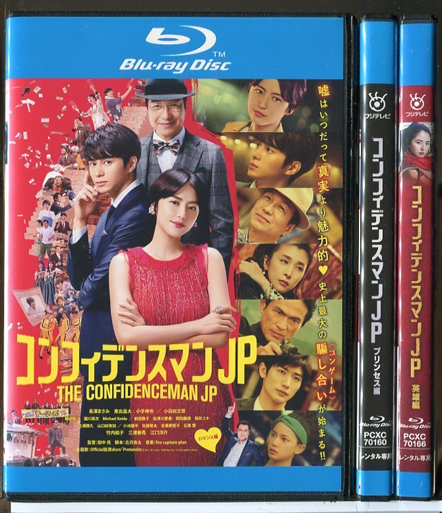 > コンフィデンスマンJP ロマンス編+プリンセス編+英雄編 3巻セット/ブルーレイ BD 中古 レンタル落ち/長澤まさみ/東出昌大/c6263