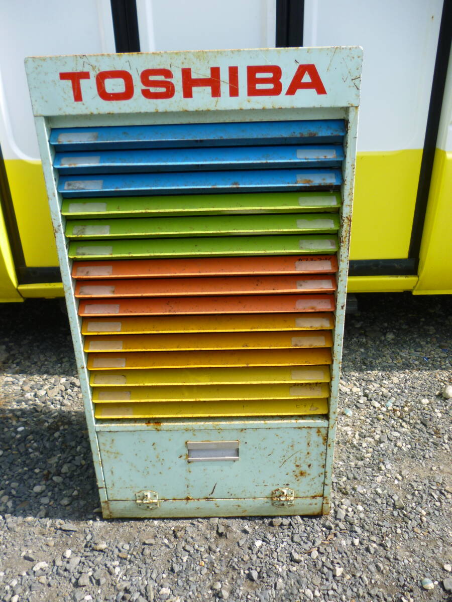 - ◆当時物 レトロ 東芝 カラフル カタログケース スチール 鉄製◆検索 書類 小物入 チョロQ ジッポ ミニカー フィギュア コレクションケース