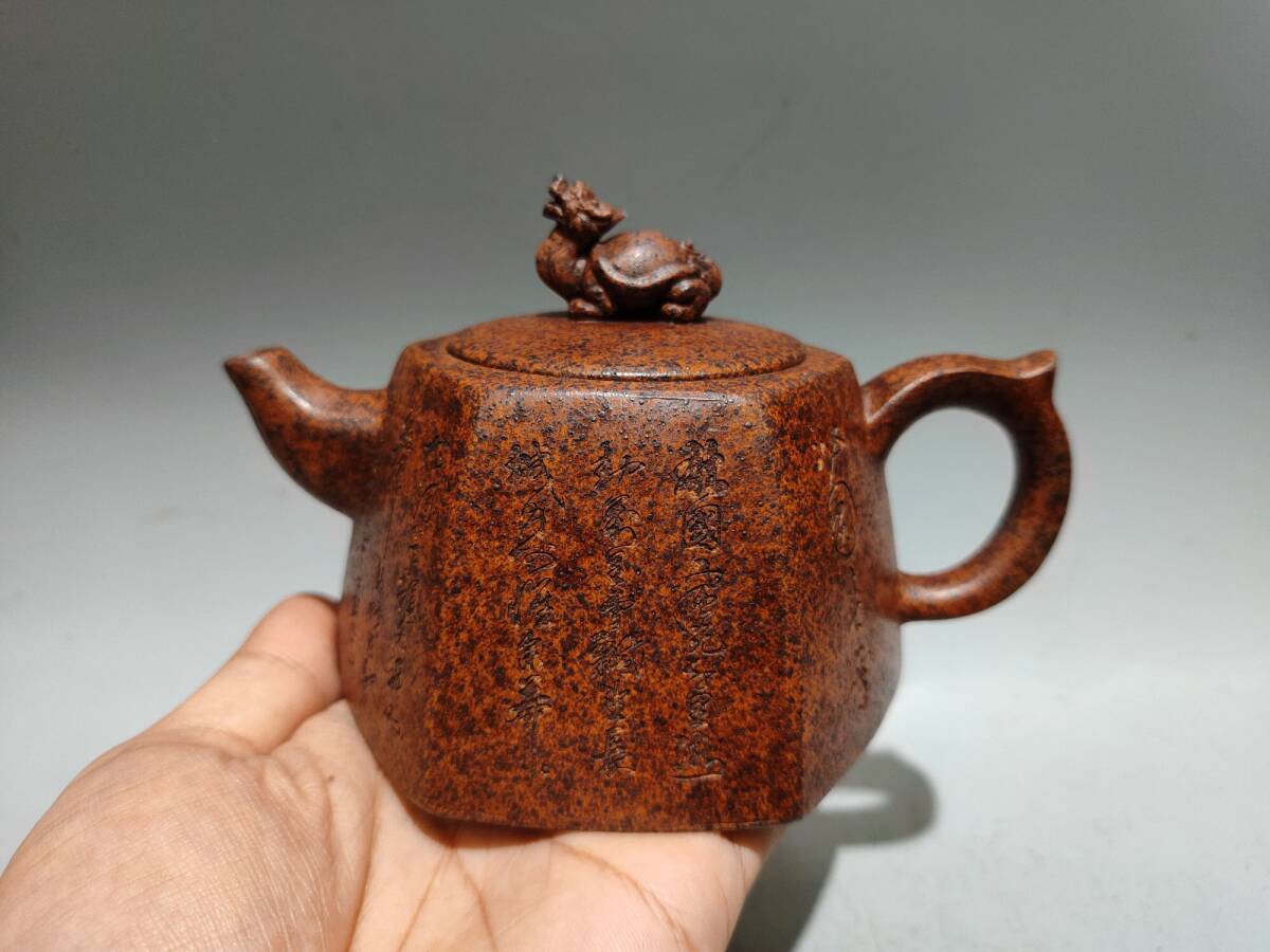 - ▽鴻▽ 紫砂壺 六方龍龜壺 顧景舟款 龍骨金砂 紫砂壺 茶具 茶道品 酒壺 急須 古賞物 古董品 時代物 稀少珍品 中国古玩 中国古美術