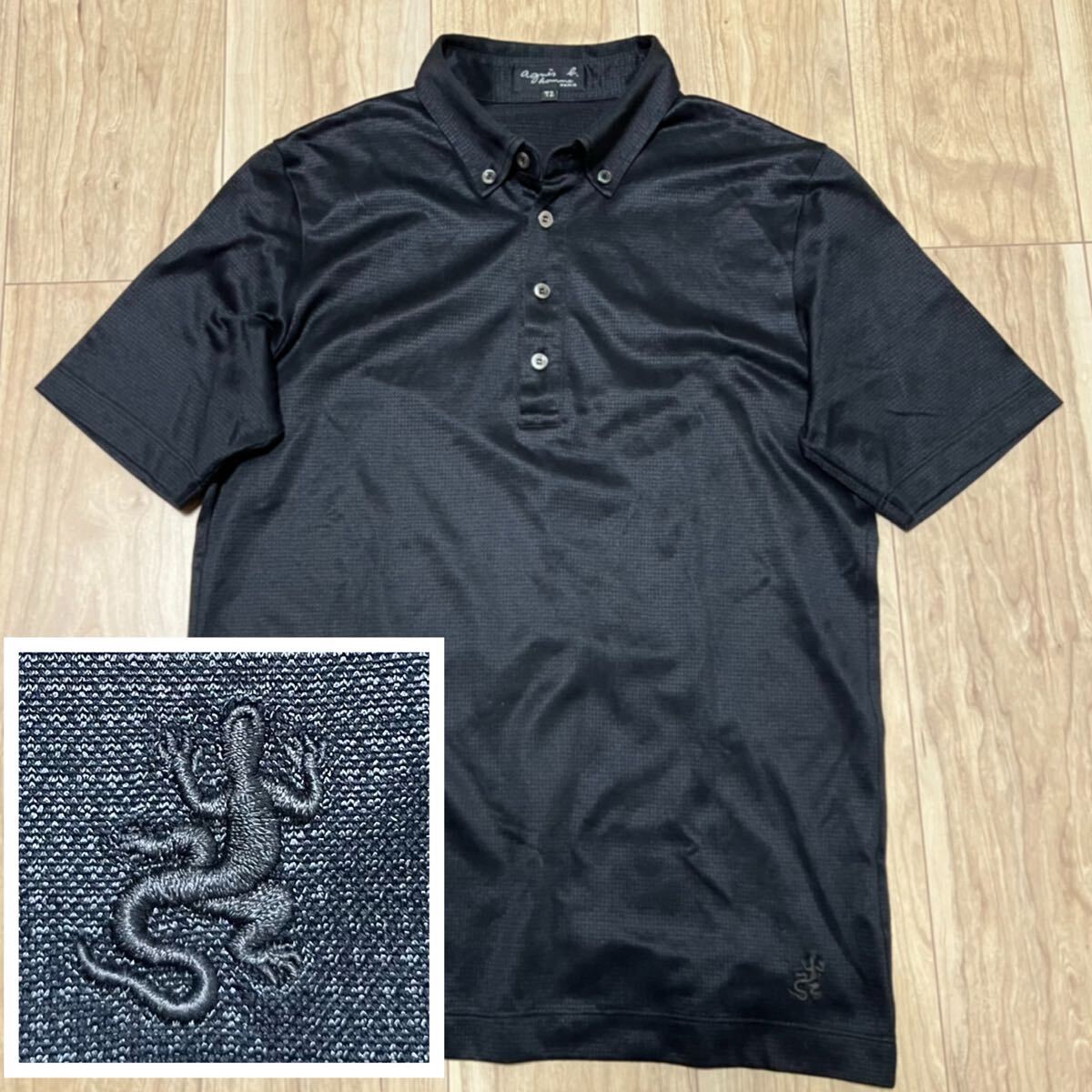 - ★送料360円★美品 agnes b. homme アニエスベーオム トカゲロゴ/レザール刺繍 半袖 BD ポロシャツ T2 ブラック 黒 日本製 メンズ R-7889