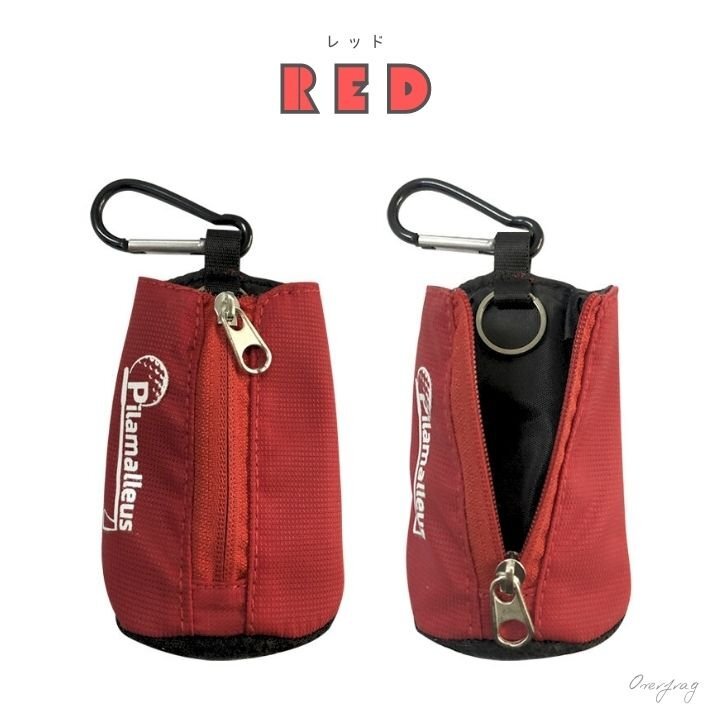- レッド キーリング 付き ゴルフ ボールケース 2個用 ベルトポーチ メンズ レディース おしゃれ 小物入れ ゴルフ用品 コンペ 景品