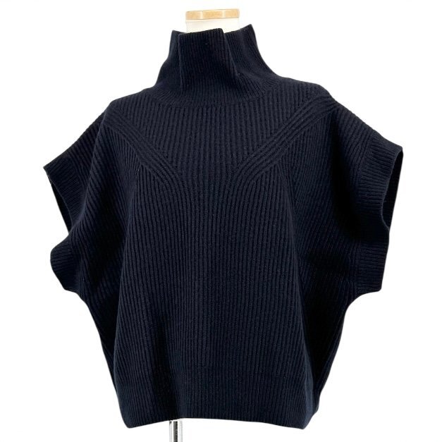 - MOGA モガ 「AQUA ショート ニット」 カシミヤ混 ウール 畔編み ハイネック プルオーバー ジレ ベスト トップス 秋冬 F 濃紺 定価¥26,400-