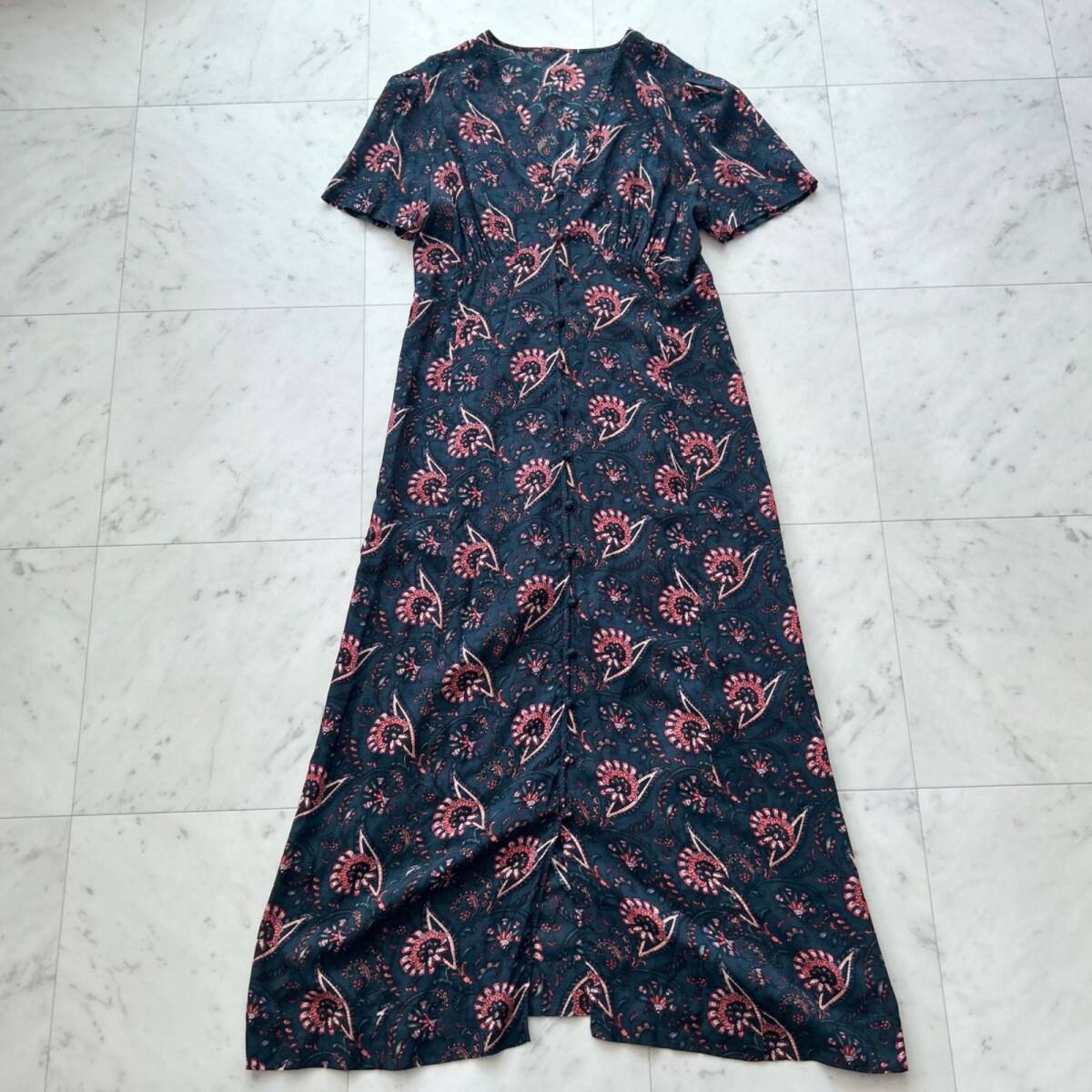 - トゥモローランド ソレイアード 花柄ロングシャツワンピース 36 インナースカート付き