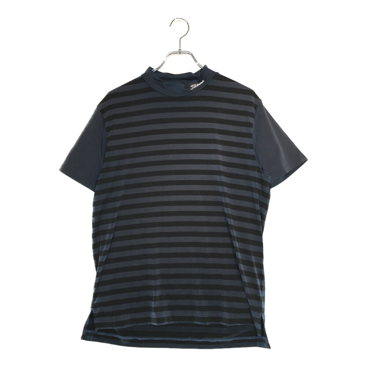 > coco 中古【値下げ】 タイトリスト Titleist メンズ 半袖シャツ LL 紺×黒 ネイビー モックネック ボーダー 薄手 ネコパケ発送可 99978