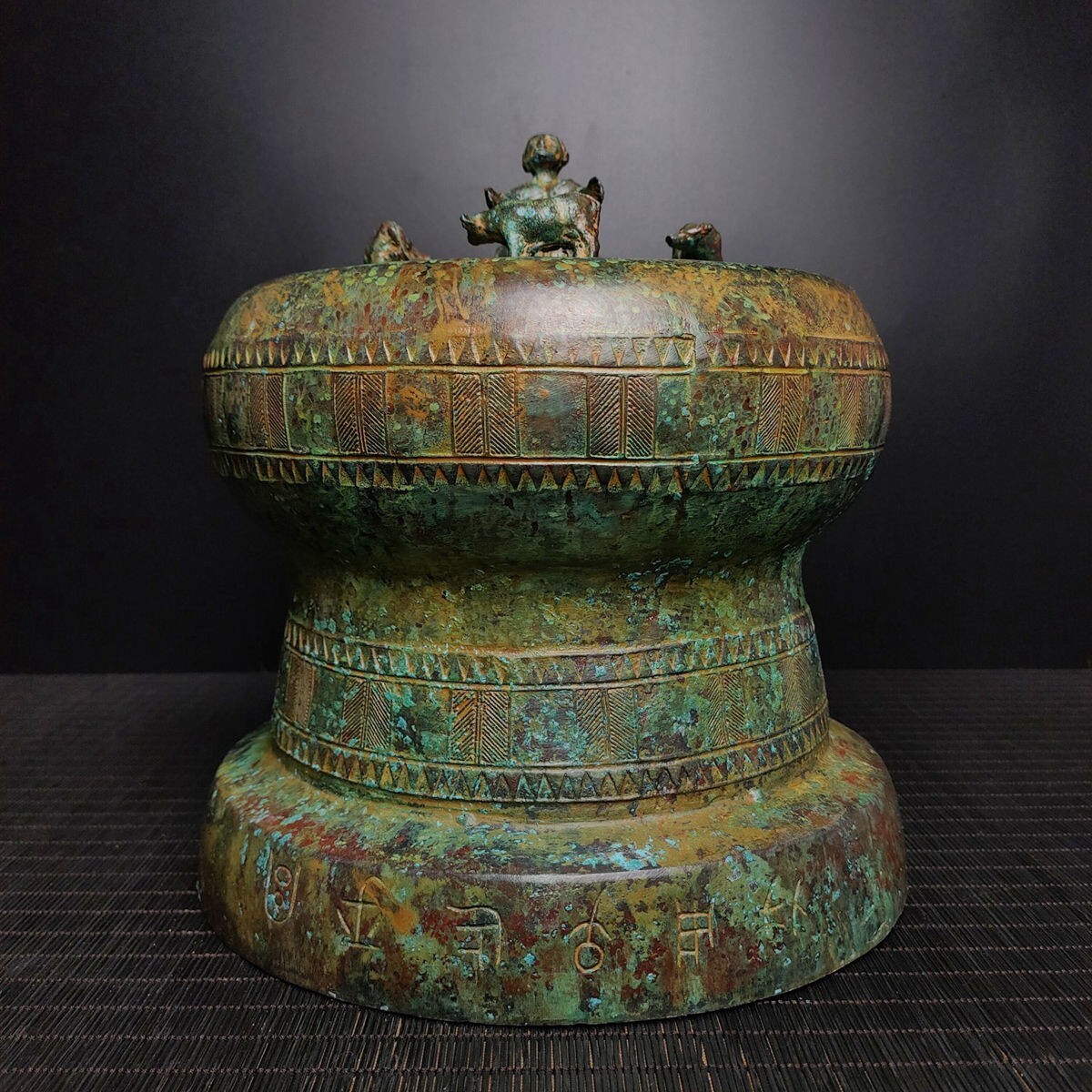 - 「戦國時期 青銅器彫 銘文青銅貯貝器」青銅器 置物擺件 賞物 中国古美術 旧蔵出
