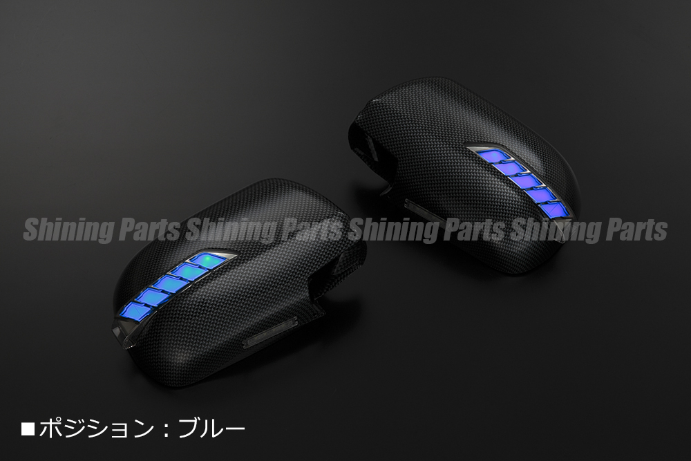- 在庫処分 流星 20系 クルーガー LEDウインカーミラー [カーボン調/青光] フット付 カバー交換 流れる ウインカー ACU,MCU 20/25