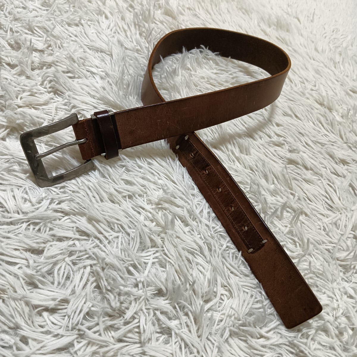 - ★WINS HOUSE ウインズハウス レザー ベルト ブラウン 茶系 本革 フリーサイズ調節可能=現状31相当 アメカジ カジュアル 革小物 古着 USED