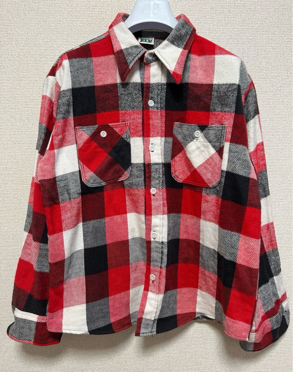 > 70's ELY ヘビーネルシャツ フランネルシャツ ブロックチェックシャツ 長袖シャツ L 16-16 1/2 USAヴィンテージ 赤白黒