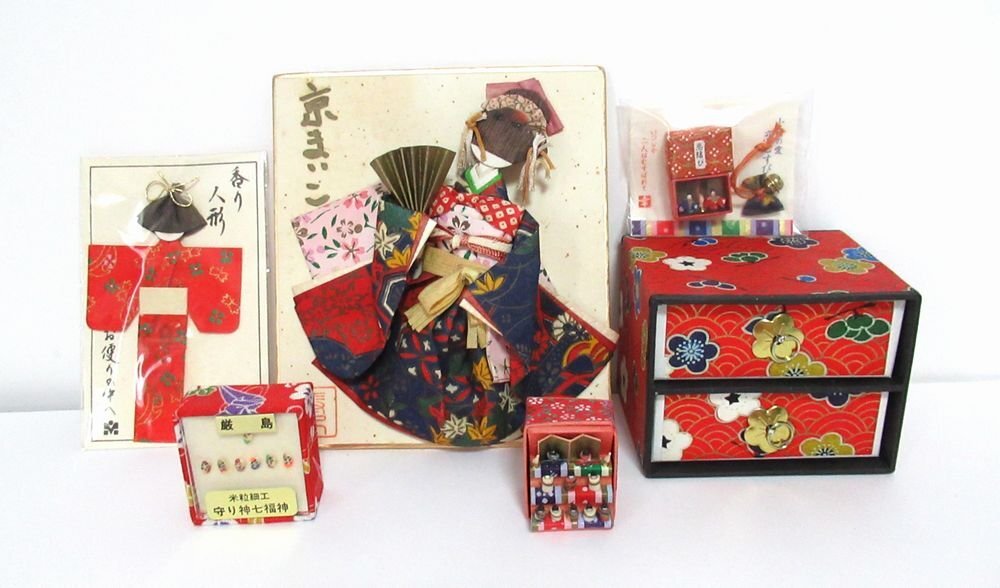 - ♪日本を感じる置物/飾り物/インテリア/京まいこ/香り人形/小物入れ/恋結び/縁結び/厳島 米粒細工 守り神七福神/全6点セット/和紙