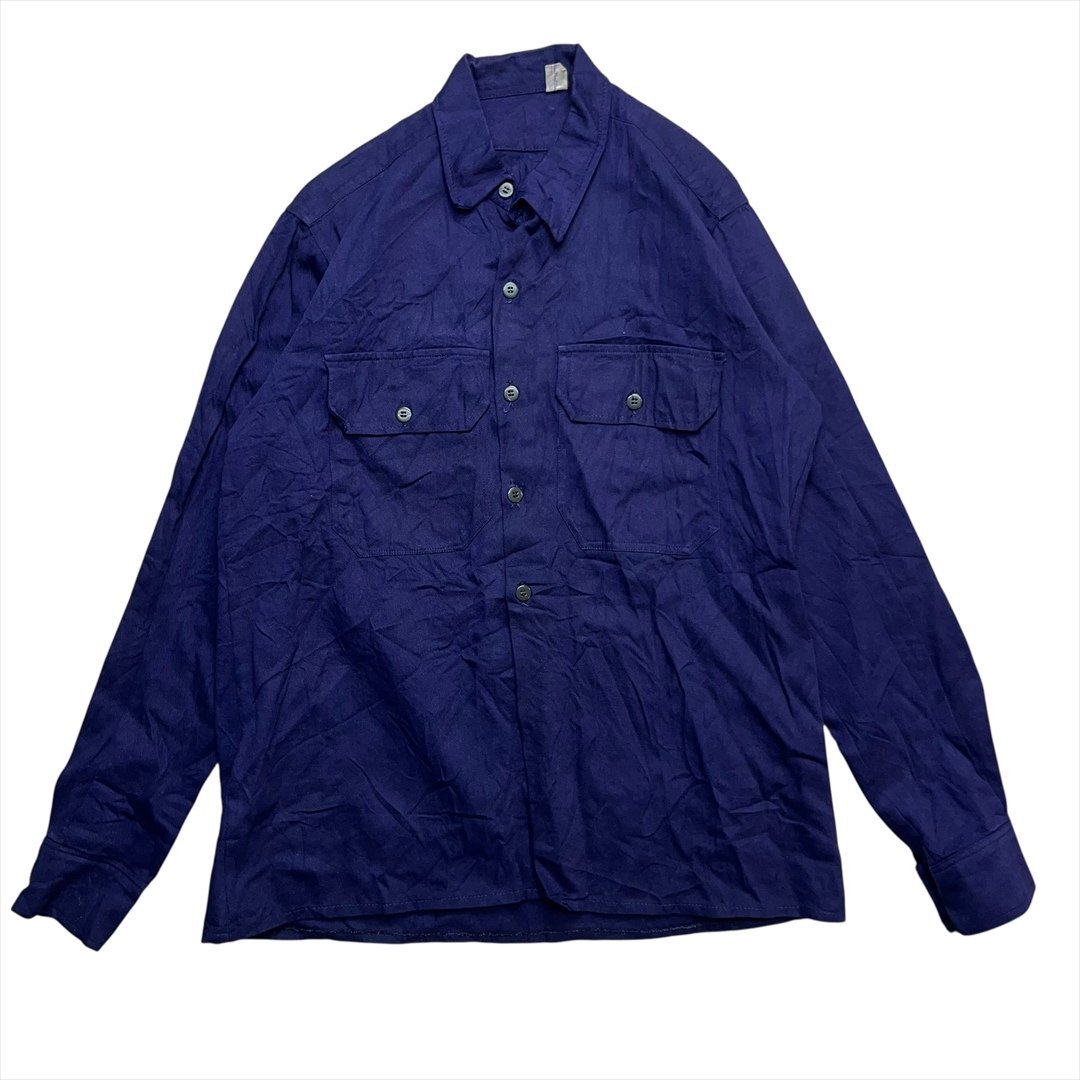 > Vintage ソリッド 無地 ユーロ ワーク シャツ 長袖 メンズ FREE ネイビー 古着 シンプル ブランク ビンテージ ヴィンテージ