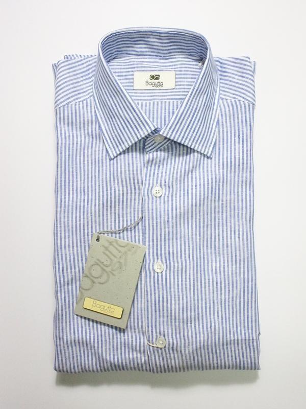 - 新品 バグッタ BAGUTTA リネン ストライプ 長袖 シャツ 38