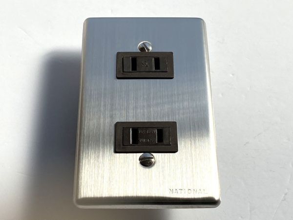 - 【新品未使用】ナショナル ハイ角連用ステンレスプレート2コ用1枚+ 明工社 連用ダブルコンセントのセット 検 昭和レトロ 当時物 松下電工