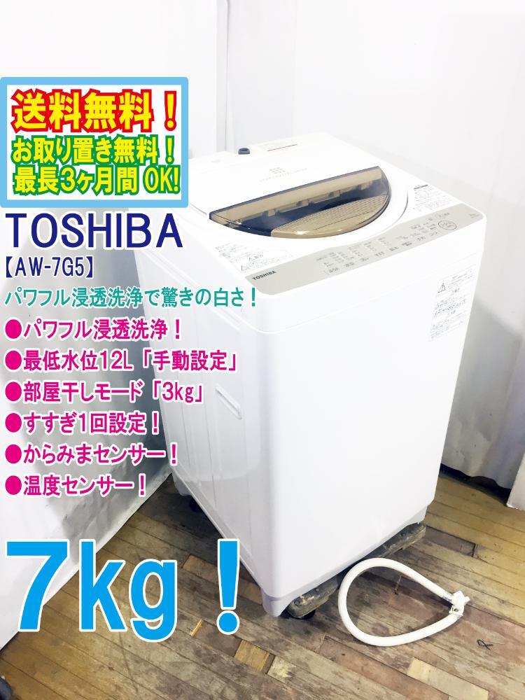 > ◆送料無料★ 中古★東芝 7㎏ パワフル浸透洗浄で驚きの白さ「パワフル洗浄浸透」洗濯機【◆AW-7G5】◆BXR
