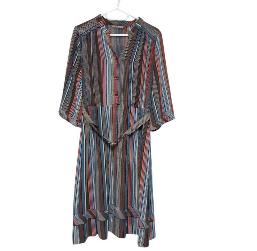 - 希少☆モード☆ベルト付きレトロ柄デザインロングワンピース☆コレクターアイテムヴィンテージ古着