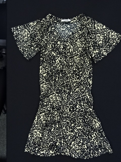 > ワンピース 黒×ベージュ 枝に葉っぱ柄 ヒョウ柄風 半袖 Coomb 古着 USED d023 レディース 可愛い 格安