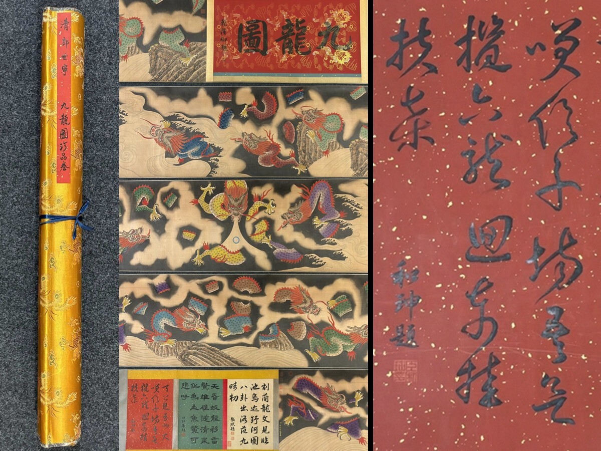 - 中国書画「清 郎世寧 九龍図長巻」肉筆絹本 掛け軸 墨寶妙品 書画横軸 巻き物 古美術 旧蔵出