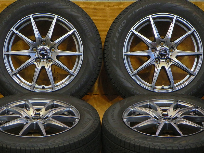 > イボあり超バリ溝超美品【24年製ピレリ アイスゼロアシンメトリコ225/60R17】17インチ 7J+50 PCD114.3-5H クロストレック SK系フォレスター