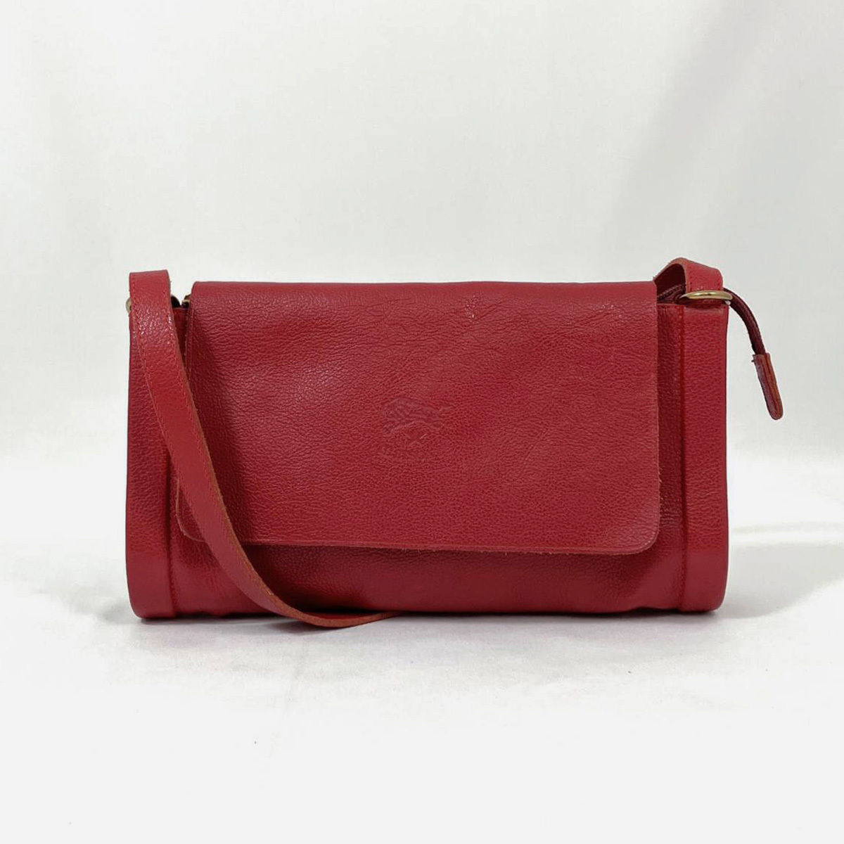 > イルビゾンテ ショルダーバッグ シュリンクレザー レッド ゴールド金具 クロスボディバッグ 斜め掛け サコッシュ IL BISONTE