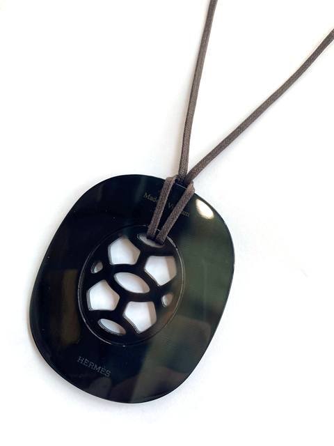 > 【即決】 HERMES エルメス リフトGM バッファローホーン ペンダント ネックレス アクセサリー 黒 ブラック グレー