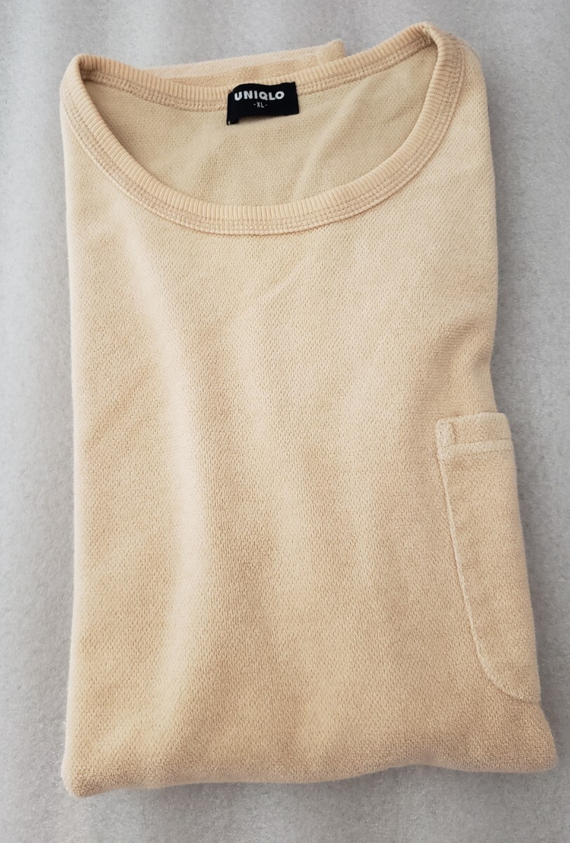 > メンズ XLサイズ オールドユニクロ UNIQLO メンズ パイル地 Tシャツ ベージュ パイル生地 半袖 前ポケット有り 送料無料